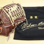ウイルソン 硬式 外野手用グラブ Dブラウン×ブロンドと付属のグラブ袋に刺繍加工&グラブ型付けをした物です。…