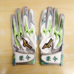 ミズノプロ バッティング手袋(ホワイト×シルバー×ライム)の手袋に刺繍加工した物です。 &nbs…
