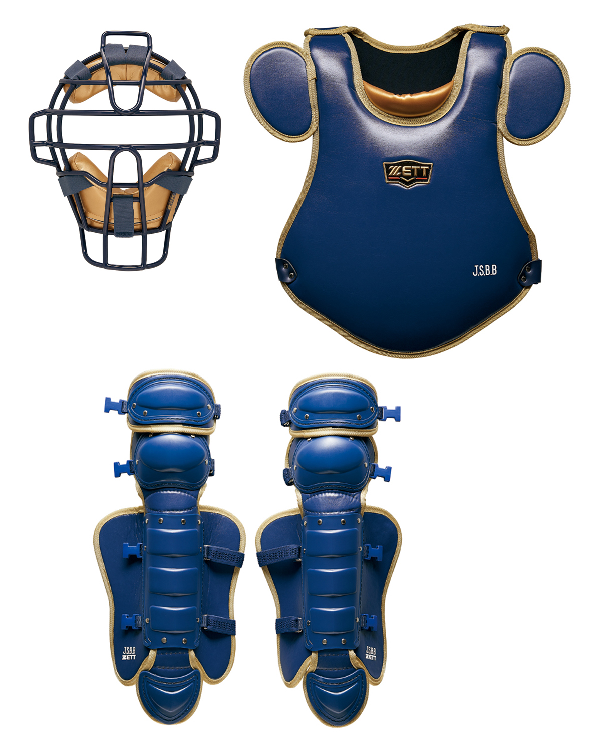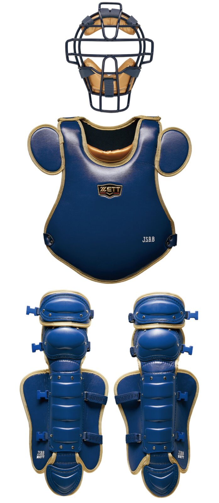 ゼット 少年軟式用 小林型 キャッチャー防具3点セット ネイビー×ゴールド BLM7010CA・BLP7030C・BLL7010CA(2982) 限定品 売り切れ