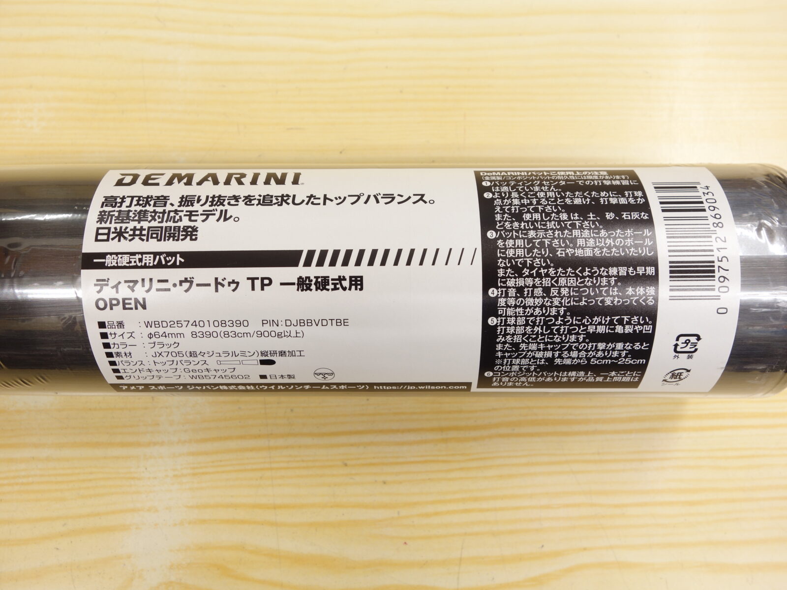 ウイルソン ディマリニ ヴードゥ TP 硬式用 金属バット(新基準モデル) トップバランス 83cm WBD2574010 ブラック