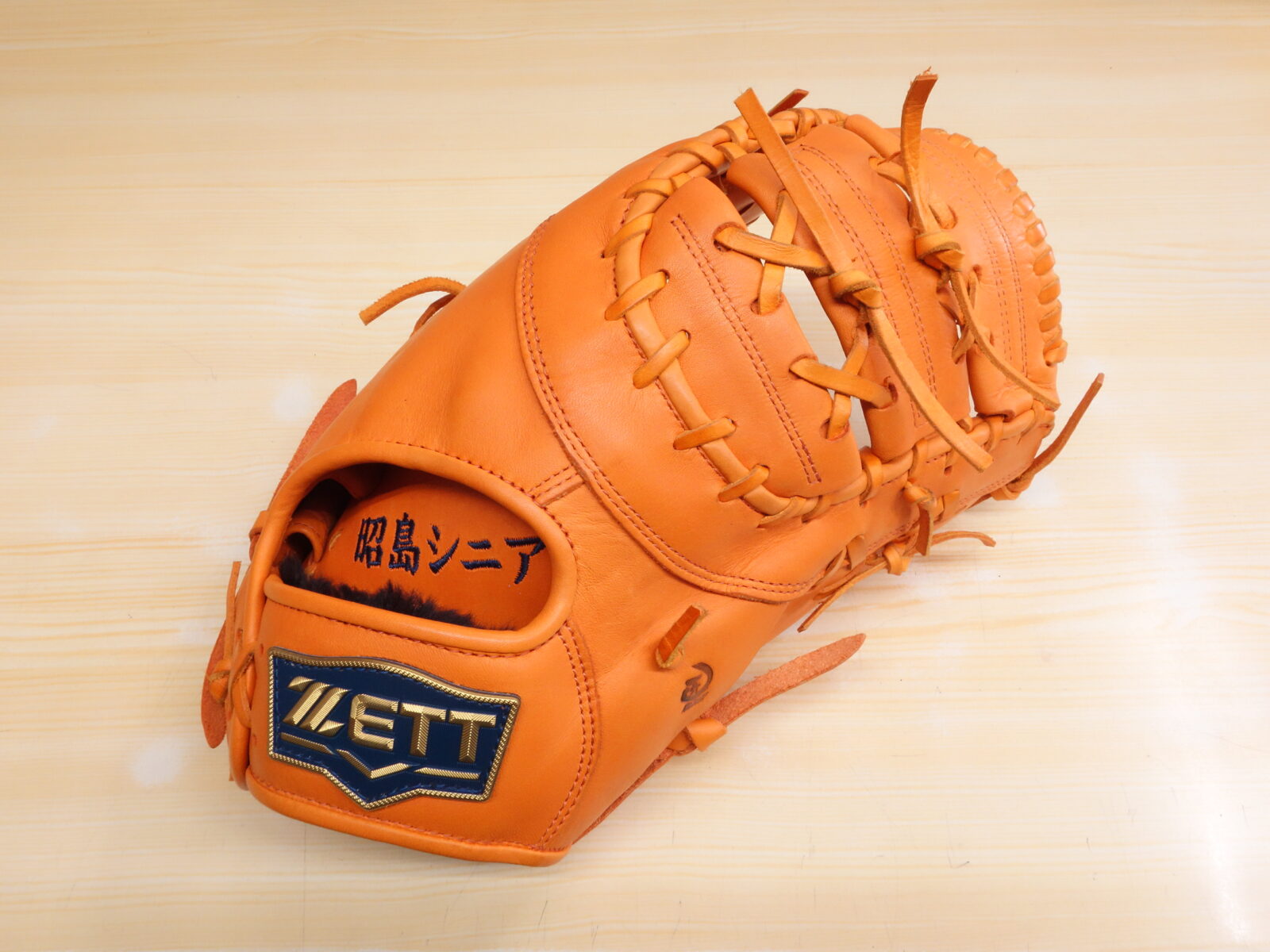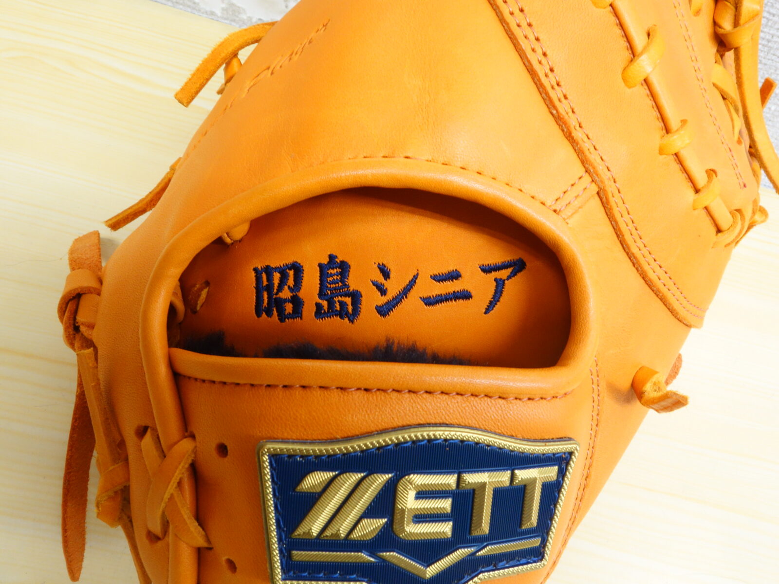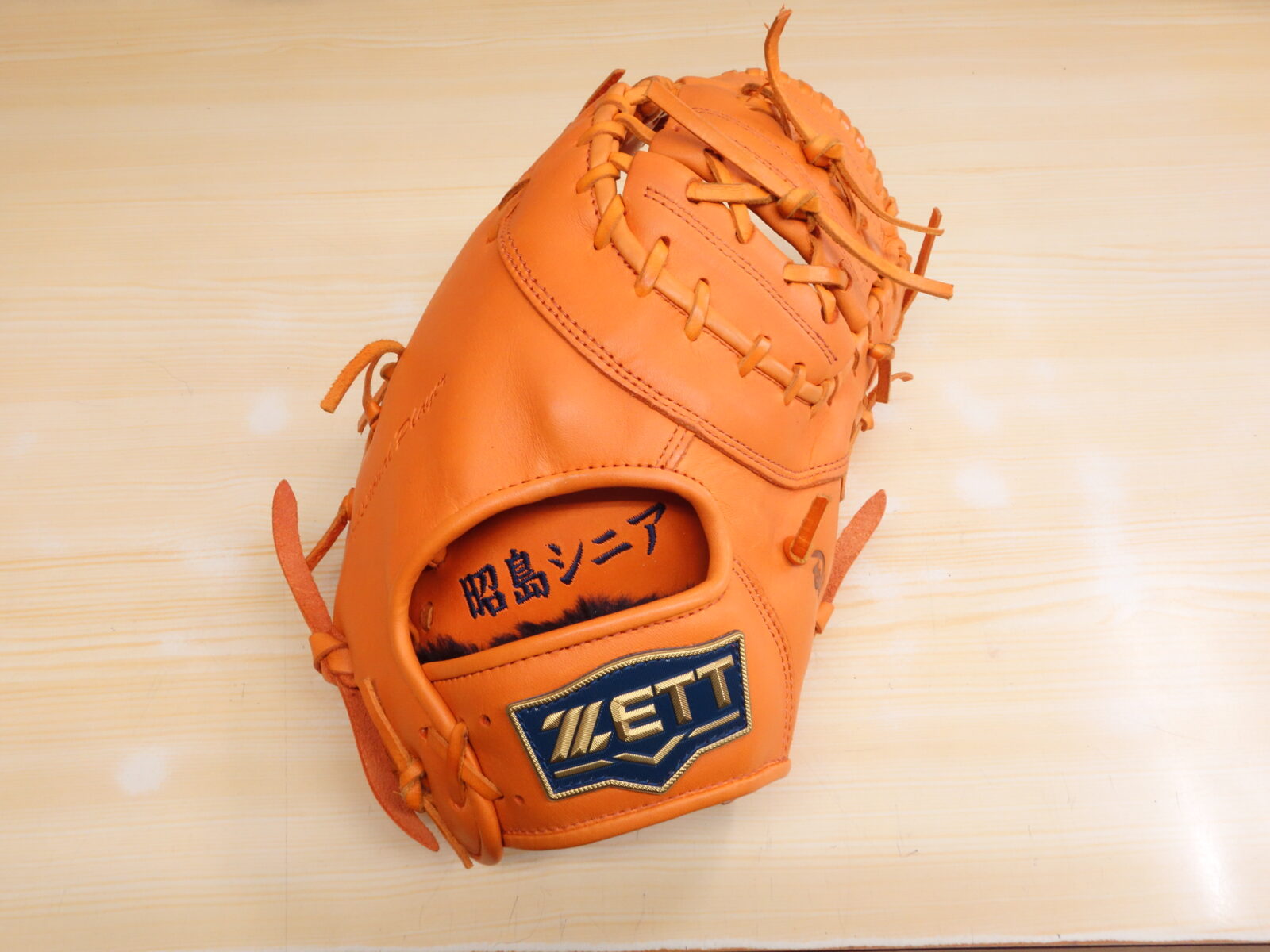 昭島シニア 様 ゼット 硬式 ファーストミット 手の平部分 刺繍加工・型付け加工 042-347-1122 〒187-0043 東京都小平市学園東町3-3-16 営業時間10:00~20:00(日祝 9:00~19:00)水曜定休