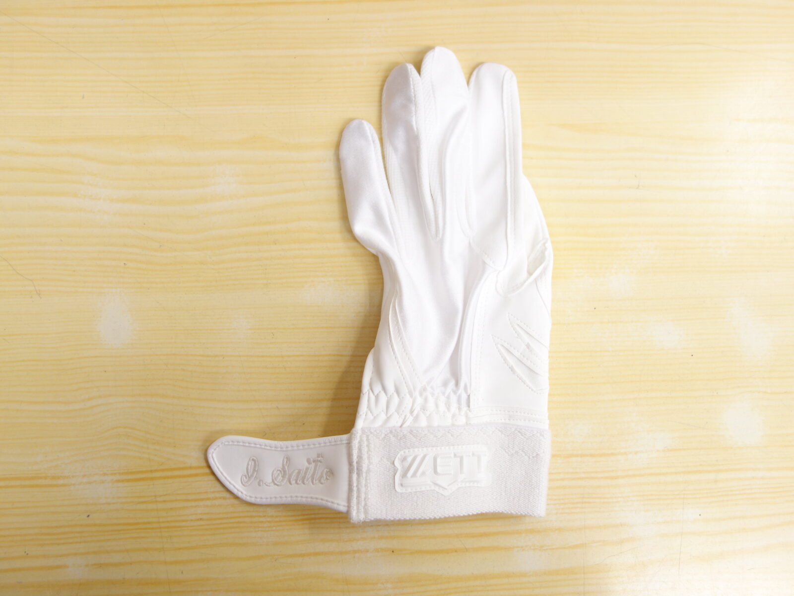 I.Saito 様 ゼット プロステイタス 守備用 手袋(ホワイト) 刺繍加工 042-347-1122 〒187-0043 東京都小平市学園東町3-3-16 営業時間10:00~20:00(日祝 9:00~19:00)水曜定休