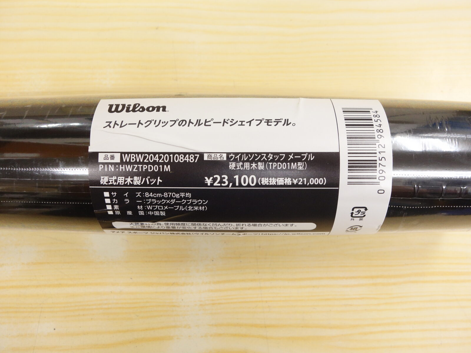 ウイルソン 硬式用木製バット 魚雷バット(トルピードバット) メープル(TPD01M型) 84cm ストレートグリップ WBW2042010 限定品 売り切れ